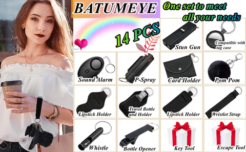 ⭐【14-Piece Set】The set includes: whistle, sound-alarm, travel bottle holder, lipstick holder, wristlet strap, bottle opener, card holder, pom-pom, compatiable with tag case.