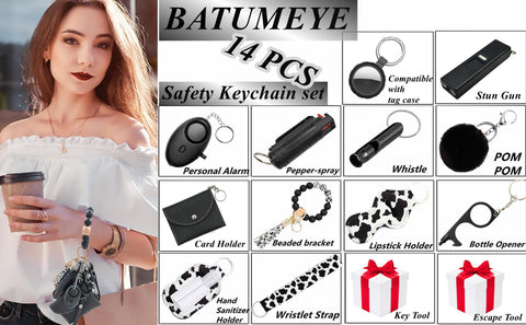 ⭐【14-Piece Set】The set includes: whistle, sound-alarm, travel bottle holder, lipstick holder, wristlet strap, bottle opener, card holder, pom-pom, compatiable with tag case.