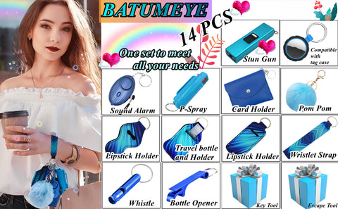 ⭐【14-Piece Set】The set includes: whistle, sound-alarm, travel bottle holder, lipstick holder, wristlet strap, bottle opener, card holder, pom-pom, compatiable with tag case.