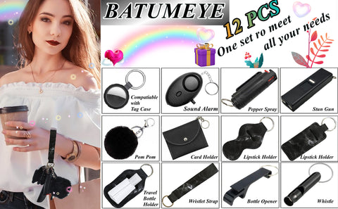 ⭐【12-Piece Set】The set includes: whistle, sound-alarm, travel bottle holder, lipstick holder, wristlet strap, bottle opener, card holder, pom-pom, compatiable with tag case.